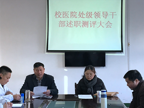 校医院于1月8日上午8:30,在校医院4楼会议室召开了医院2020年度述职测评会。组织人事部方庆科长、校医院全体职工参加了述职测评会。